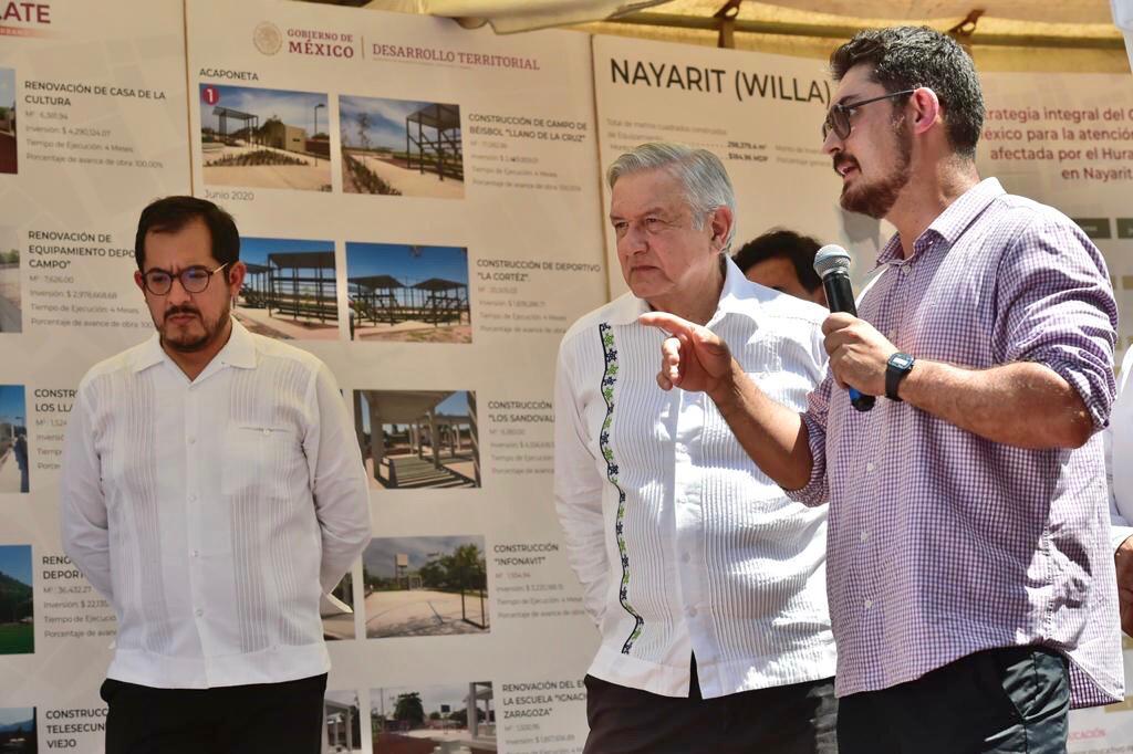 Al acompañar al presidente Andrés Manuel López Obrador durante la supervisión de obras, el titular de la Sedatu, Román Meyer Falcón, recordó que desde el periodo de transición, el titular del Ejecutivo federal le encomendó atender a los vecinos de Acaponeta, Del Nayar, Huajicori, Rosamorada, Ruiz, Santiago Ixcuintla, Tecuala y Tuxpan, comunidades que se vieron mayormente afectadas por el paso del huracán.