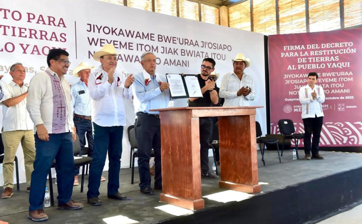 “Con la firma del decreto de restitución de tierras al pueblo yaqui, se demuestra que es posible hacer efectivo el derecho inalienable de nuestros pueblos a nuestras tierras y territorios tradicionales”.